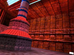 After all that I figured that this level needed a reactor-like object. They are really cool looking in a level and they are pretty easy to make. I did the same thing as the pillars only that I 'staggered' the verts more, in other words, the verts airn't in a straight line. After that, I lathed the verts and textured the results.