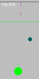 Here's a shot of our ball in D3Edit. It looks tiny next to a player but it's really 30 units in diameter; much larger than a player. To make it proportionate to it's actual size, set the 'SIZE' entry to the object's radius (not diameter). The 'After' shot is from D3Edit after I changed