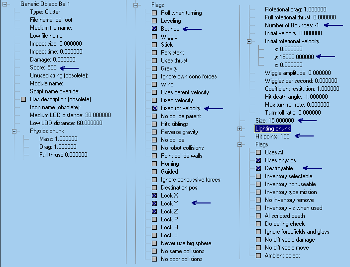 the score for destroying it. Remember to set a value, DBL-Click on