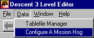 Go to Data-Configure A Mission Hog as shown to the right. |
