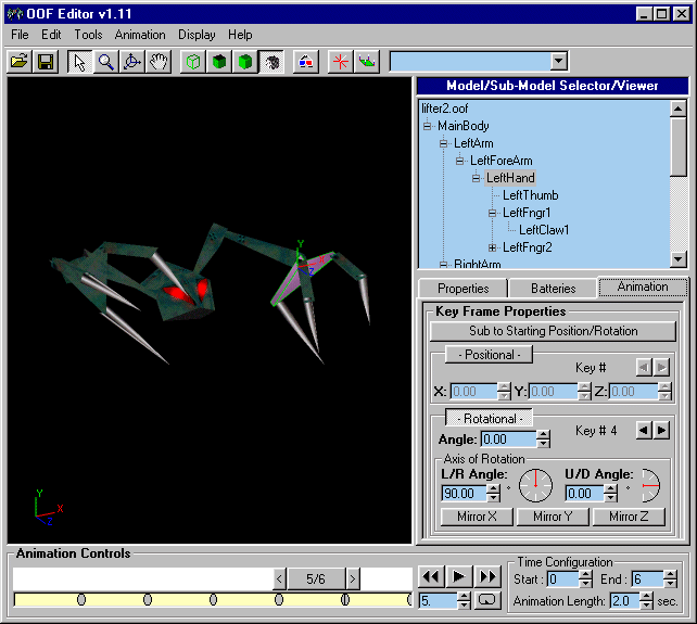 Here's a small screen shot of OOFEDITOR featuring my pet lifter 'Max' as I take him through his animation key frames. SuperSheep was nice enough to use Max as his OOFEDITOR logo. |