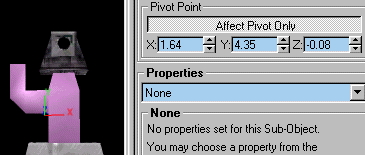 To move the pivot point highlight the sub-model, click on "Affect Pivot Only" then adjust it's XYZ Location. |