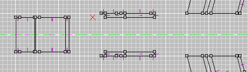 | Mark one of the back verts and move it half way to the the opposing vert as shown below. Since everything is still on grid it would be easy to just move the other vert to it. | You're here to learn so use Snap Marked Verts to Current Vert. Mark the vert to be moved. Make the other other face and the target vert current. | Now pick the Snap Marked Verts to Current tool |