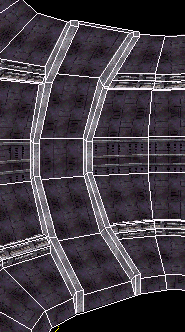 | The new portion of faces should look like below. Mark them and extrude up (in Top View) 40 units with normals pointing inward. | Mark and delete the faces I have circled and pointed to