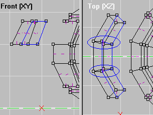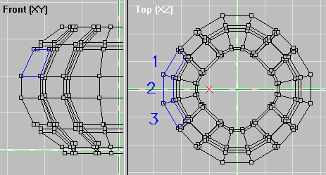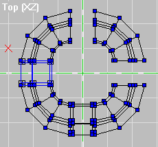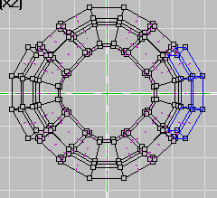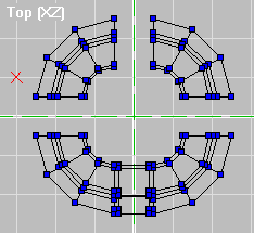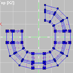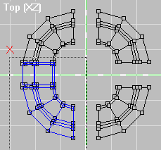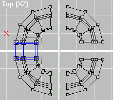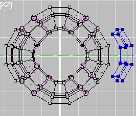 Mark the verts as shown to the right. Copy, Paste-On-Top, then move the new verts 300 units to the right to work on. |