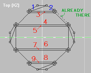 In the 3d window, set on Texture with Outline, use SHIFT-CLICK to texture the new faces so it looks like mine to the right. Remember to reset Default UV's and align textures. |