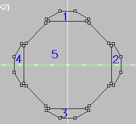Combine faces 1 and 2. Now combine faces 3-4. Finish combining faces so you end up with 5 as shown to the right. |