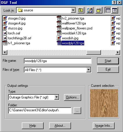 types selections you can convert from TGA to OGF or OGF to TGA.
