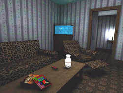 3, I created a level inside a house. Custom textures include wallpaper,