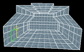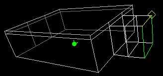 A portal is the point at which 2 separate rooms are joined - a doorway. We created a portal when we extruded room 2 into existence. This time we have the new room already, we just need to stick it onto our level. Having the faces match up perfectly between the rooms we will join will keep our level on the grid. Faces do not need to be identical in order to create a portal, but if they are not, the chances of alignment problems increases. This is not to say that we will be on-grid throughout the entire level - we won't. Placing Rooms Use alt-tab and open the World View window. Ex. k shows where we will attach our new room - make the face current as shown. ex. k Go to the Room menu and select Place Room at Current Room. ex. l The faces are a perfect match. The room has not yet been attached (ex l.) and can be moved, or un-placed using the un-place command if desired. Go to the Room menu and select Attach Room. The room is now outlined in white...it is part of our level! Save your level! Make sure the new room is current and go to Window/Room Properties. Name this room the barn (it kind of looks like a barn...) and close the window. Run Verify mine...perfect