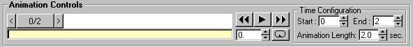 Now for the fun part. If the slider down in "Animation Controls" isn't at 0, put it at 0. Decide how many additional keyframes you want the door to animate through and set "End:" under "Time Configuration" to that number. (The "Animation Length:" value only affects the animation speed in OOF Editor -- it does not affect how quickly your door will open/close in D3.) For this example I'll do a simple "Locks-Slide-Apart,-Door-Slides-Open" animation organized as follows: